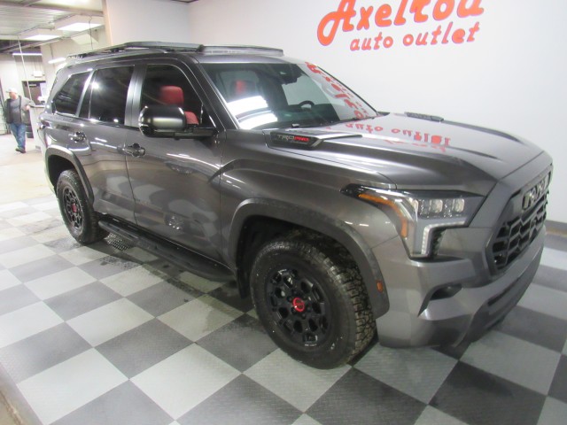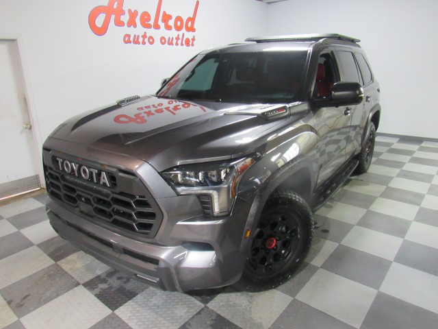 One owner Clean Carfax 2025 Toyota Sequoia TRD Pro Hybrid 4x4 with power heated & cooled leather seats, panoramic moonroof, JBL Audio with 14" screen, Bluetooth hands free phone and audio streaming, power windows, power locks, tilt steering, and much more. Over 27 photos inside and out of all our vehicles. We offer financing thru several banks and will be glad to help you obtain the best interest rate for your purchase. We welcome trade ins and offer extended warranties up to 100,000 miles. For out of state purchases we can provide transportation from both Cleveland and Akron airports. Call Rod Scott at 330-336-8855